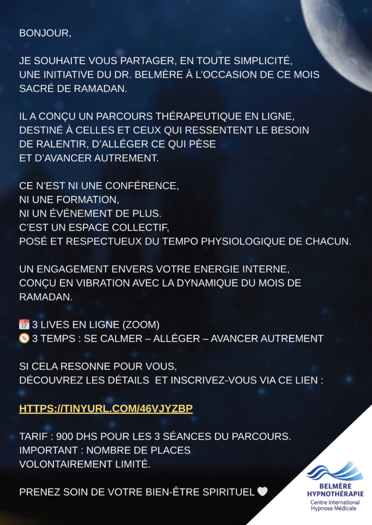 L'avantage de cette technique est de pouvoir soigner à distance de très nombreux patients qui peuvent occasionnellement avoir recours à une séance en ligne directement avec moi via les outils modernes de communication que sont Zoom, WhatsApp ou Meet.